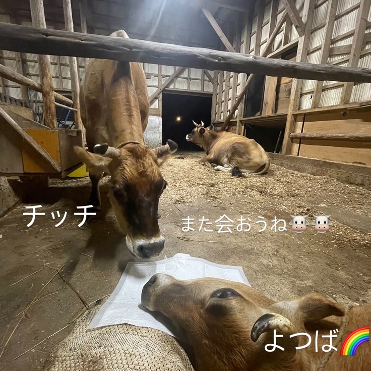 7月24日に急遽、ももではなくカミの子供のクロを迎え、10頭になったFeel at home🍀でしたが、8月9日の朝、よつばが牛舎内で起き上がれなくなっており、診療所も休みで3日間看病しましたが、11日の20時頃に虹の橋を渡りました🌈