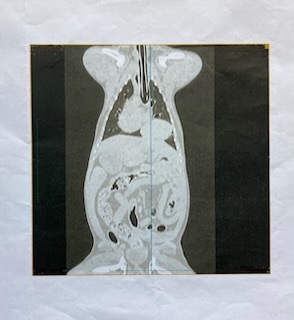 ももちゃんを悪質な繁殖屋から救ってもらったその1年後の健康診断(血液検査、エコー、レントゲン)で胆嚢に油が溜まる胆泥症が発覚し薬剤の投与を開始。レントゲンの肺の近くに腫瘍のようなものが見えると告げられ、その後すぐ地元の動物医療センターでCTを撮ってもらいました。結果、腫瘍ではなく『後大静脈孔ヘルニア(レアなケースだそうです)ではないか』との診断を受け、定期的にレントゲンと血液検査を行うようにいわれました。(最近4月23日に後大静脈孔ヘルニアの疑いは高くないということが分かり、病名は先天性胸膜腹膜ヘルニアと最終診断されました)