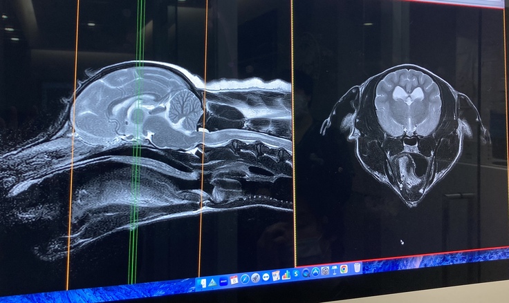 しかし、今年4月東京へ渡航し、動物医療センター(循環器科・脳神経科)での専門的な検査(CT・MRI)を2日間に渡り行った結果、MRI検査では「脊髄空洞症」と「てんかん」両方あること、その他にも多発性ヘルニア(腰椎、頚椎、他)が発覚し、痙攣の方はてんかんによるものと診断を受けました。 胆泥症・てんかん・脊髄空洞症に関してはこれ以上悪くならないように定期的な検診や毎月の通院、一生涯毎日の薬剤投与となりました。