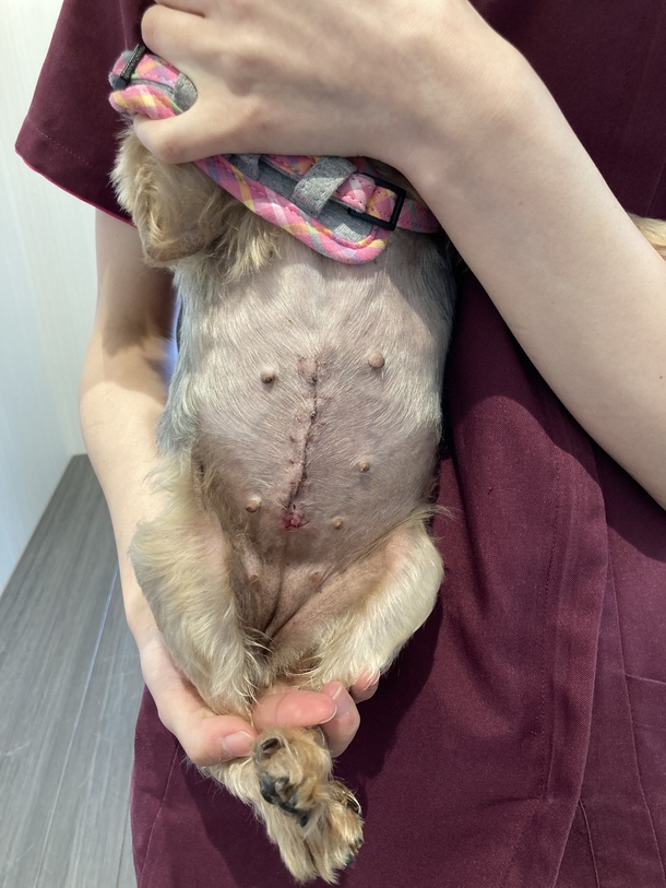 退院してから1週間が経ち、今日抜糸してきました。一箇所傷が赤くなって少しジクジクしてますが、よくなっていくそうです。