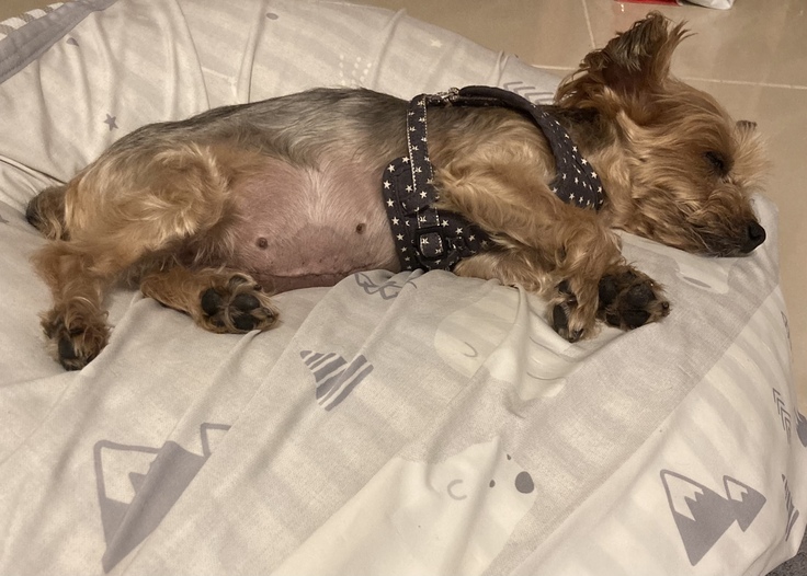 ももちゃんの手術からもうすぐで1ヶ月が経ちます。傷もかさぶたが少しありますが良くなってきてます。お金の節約でカットやシャンプーは自分でしていますが、縫ったところが大丈夫かな😣と、まだ怖くてお風呂に入れてあげれてません💦