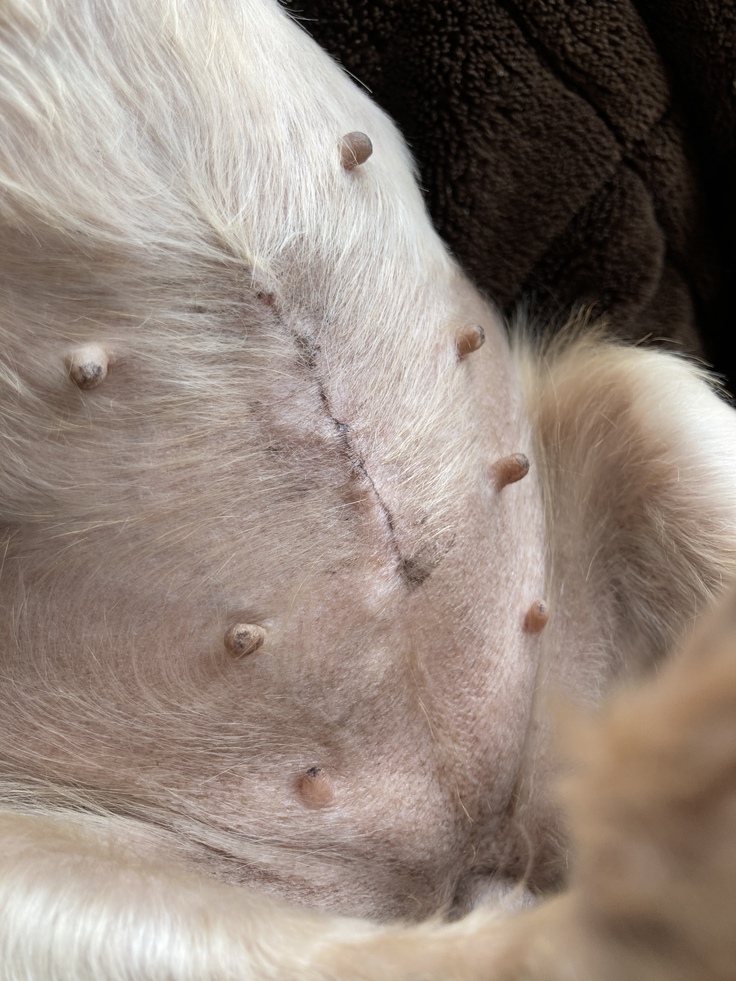 今日、東京の病院に写真を何枚か送り、電話したのですが、手術してくださった担当の先生は日曜日まで出勤してこないらしく日曜日まで待つことにします。↑縫ったところの付近を触ると、硬くてボコボコしたます。小さくて硬い球が入ってるような感じです😨