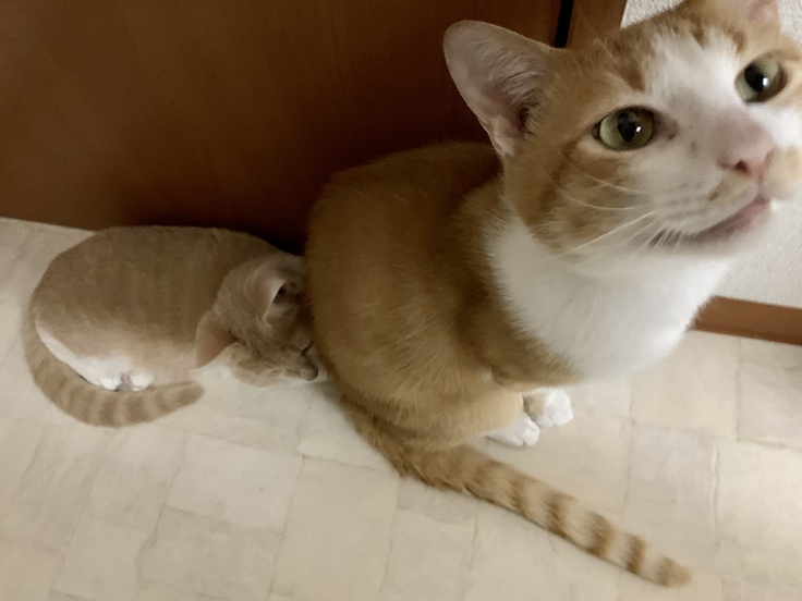 おもちは人懐っこくて、甘えん坊で、そしてとっても優しい猫です。撫でて欲しそうによく体を擦り付けてきます。寝る時は、いつも私たちの布団の中か枕元に来てくれます。同居猫のぷく丸の面倒もよくみてくれます。体を隅々まで舐めて綺麗にしてあげたり、自分のご飯を横取りされても2匹で仲良く過ごしてくれています。