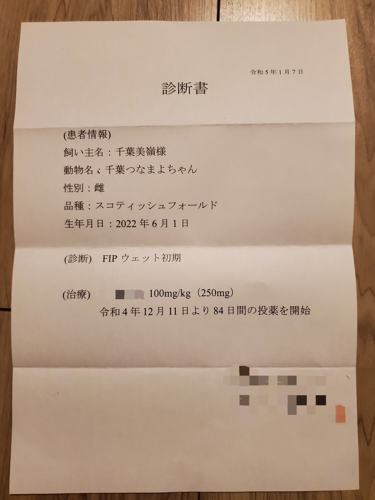 ほぼ100%FIPで間違いないと言われ、私たちは頭が真っ白になりました。