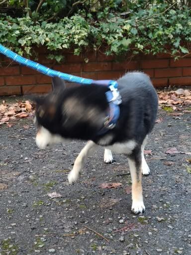 早速、家に着いた時に家の前で降ろしてみたら、後ろ足を引きずりながらではありますが、カメラのピントを合わせる間がないほど、嬉しそうにバタバタと動きまわりました。家でトイレの時、ぐるっと回っているところは見ましたが、それよりも機敏でビックリ! あんまり動きすぎてはいけないので家に入るようリードをちょっと引いたら、両足を踏ん張って動かず。初めて見せるささやかな抵抗。やっぱり全く吠えませんが。