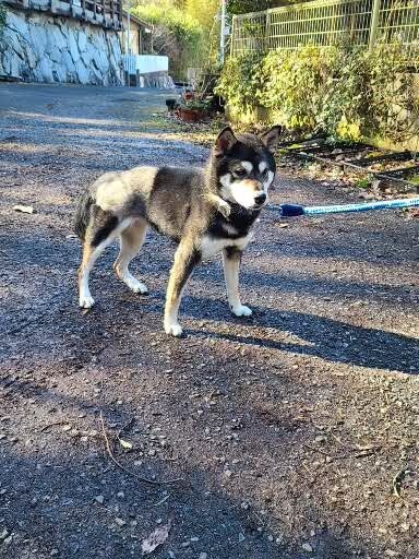 ここ3日ほど、ちらちらと雪が舞っていましたが、お散歩2日目(2月16日)の朝は、起きると一面うっすら雪景色。晴れたので午後にはすっかり解けましたが、とっても肌寒い中、シオンの2回目のお散歩に。家のあたりだけですが、ぱたぱたと歩きました。