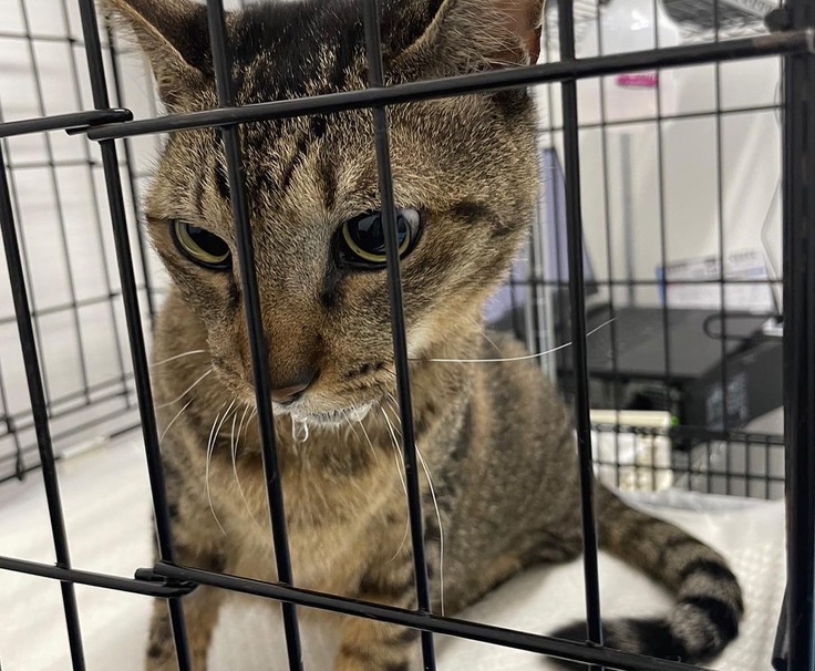 にゃーとも言わす、ヨダレがダラダラたれています。