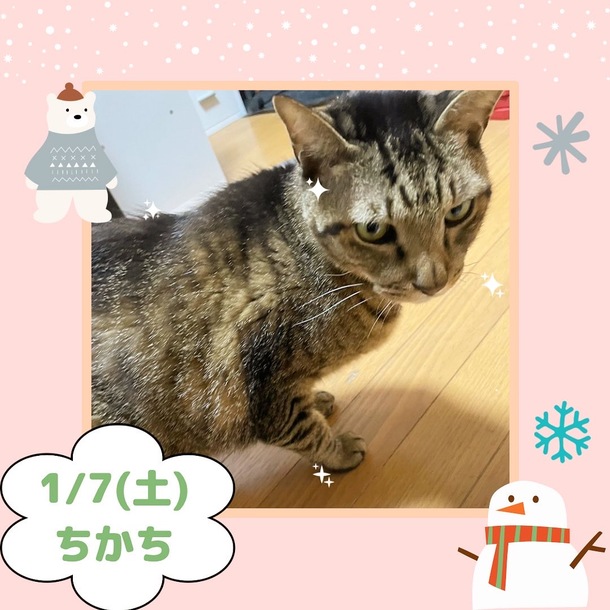 チカチくんと言えば、お鼻のウリンコ(イノシシの子ども)印。こちらも子猫の頃からのチャームポイントです⭐️