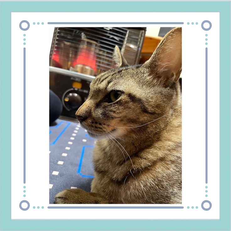 ストーブにあたるチカチくん、暖かそうだね☺️