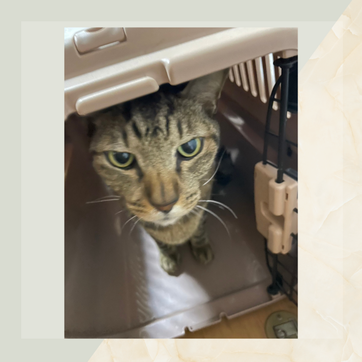 チカチくん今日は、お薬(ステロイド)がいやでキャリーに入って出てこなかったそうです🥲
