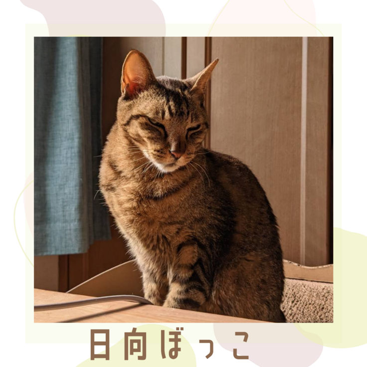 昼間は日向ぼっこをしてたようで、長男から目を細めたちかちと、