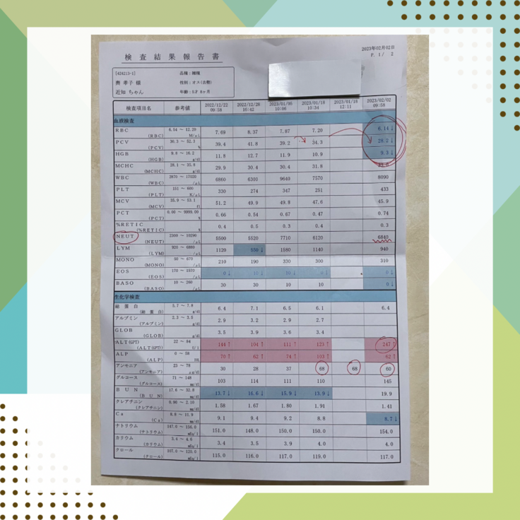 今回チカチくんは、食欲が、落ちているので検査はなし。