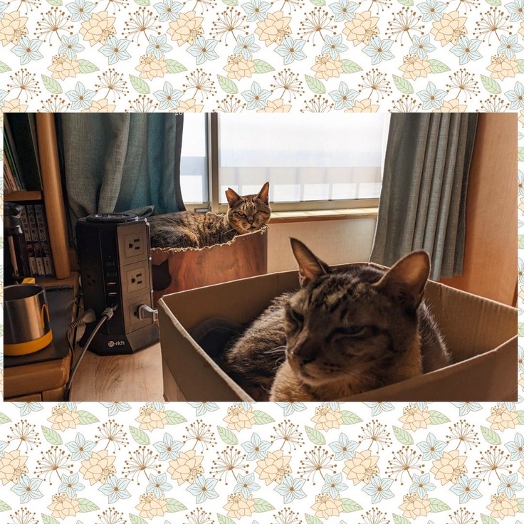 お気に入りのダンボールは長男のデスクの真横🙋