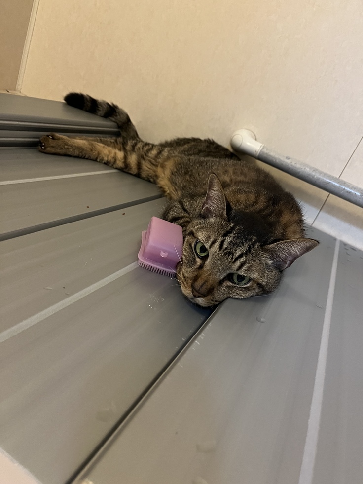 ブラッシングをして、かつぶしを食べてもらうのがお決まりです💮