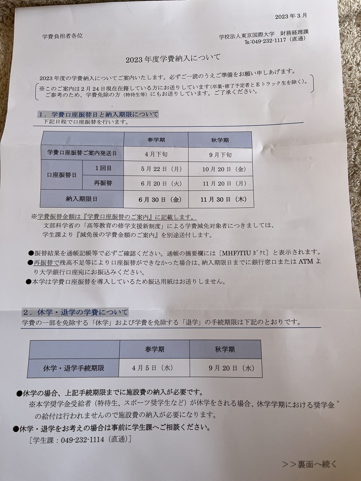 前期は何とか工面が出来ましたが、後期が足りません。。