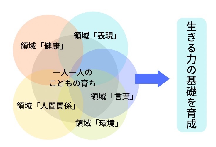 ※発達の側面から5つの領域を示しています。これらは幼児が環境にかかわって展開する具体的な活動を通じて総合的に指導されるものです。
