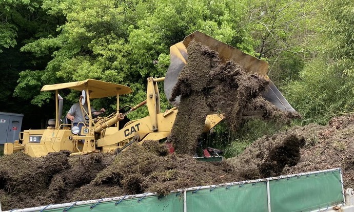 そんなある日、芝管理業務の際に目の当たりにしたのが、廃棄業者に持っていかれる数々の植物や天然芝生です。この【産業廃棄芝】を何かに役立てられないか?と思ったことが今回のプロジェクト(以下EVERGREEN緑化プロジェクト)に繋がる瞬間でした。