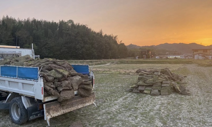 広い土地で、地域の皆さんと協力し合いながら、廃棄芝を養生し、綺麗で安全な芝を作りつつ、循環型且つ、継続性のある仕組みにしていきます。