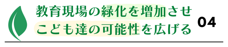 また、循環型緑化を実施していく上で、教育現場だけではなく、病院や公共の場、企業施設においても緑化をしていくことで自然が当たり前の社会になることを展望としています。