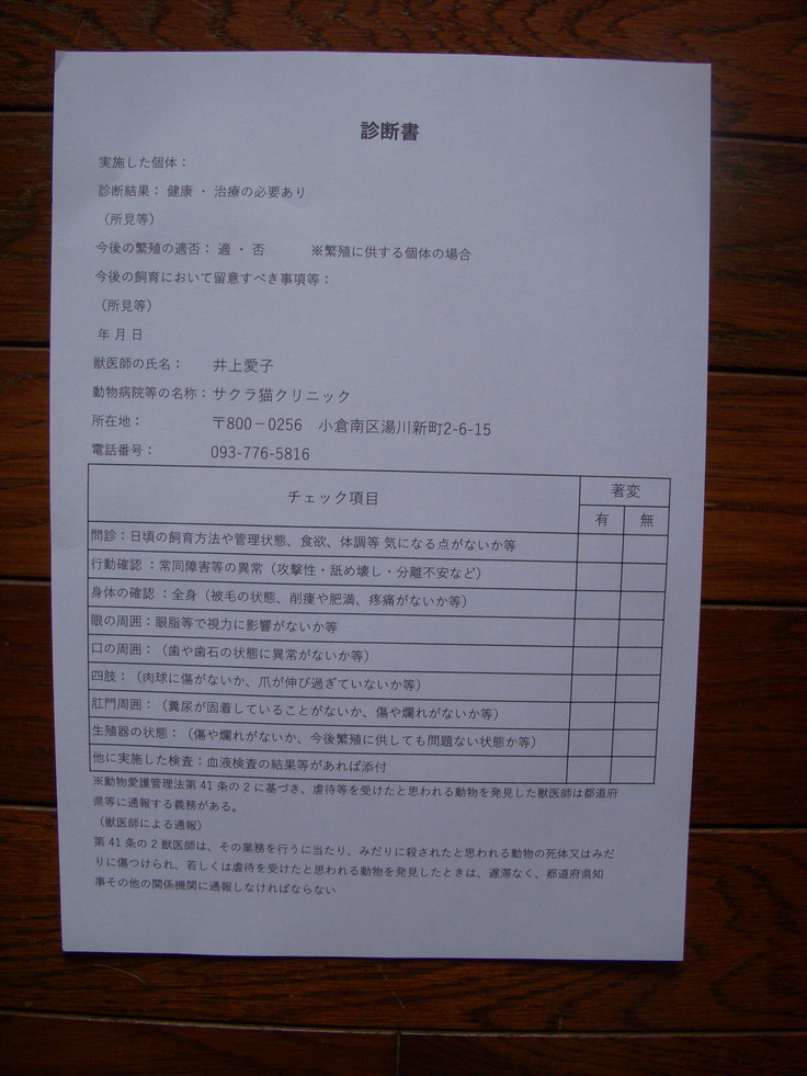 1頭1枚、これ印刷して持って行き 現場や猫の状態を確認・記載して 責任も負うとなると