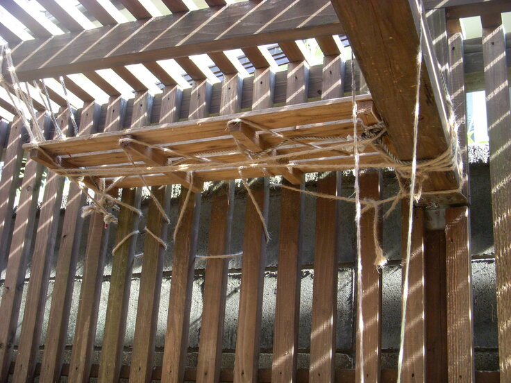 簀の子を吊って ハンモックのような 空中寝床にしてます