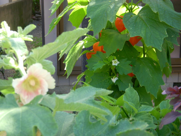 後ろに見えてる 鬼灯 は先週、亡くなった子の為に 植えました