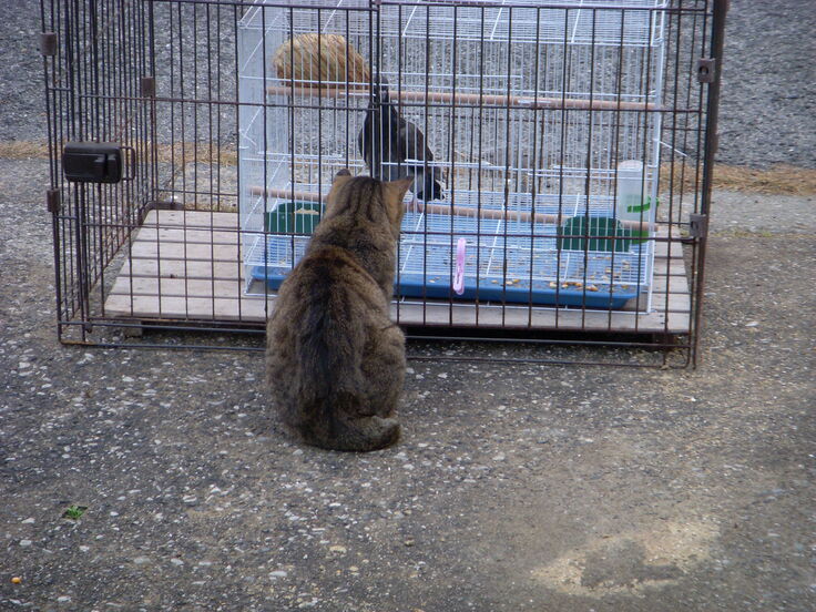 でも 猫ゲージの中に 鳥のゲージを入れてるので 手出しは出来ません