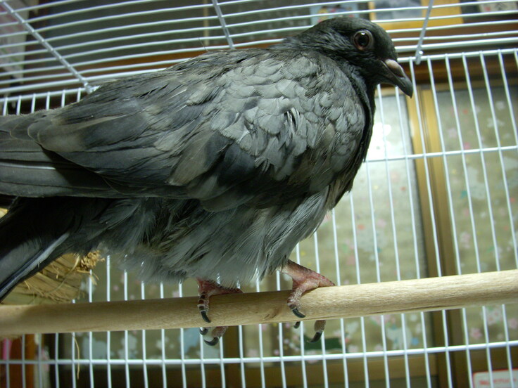 体の下の方の羽毛も黒から グレーへ!! 変わってきました
