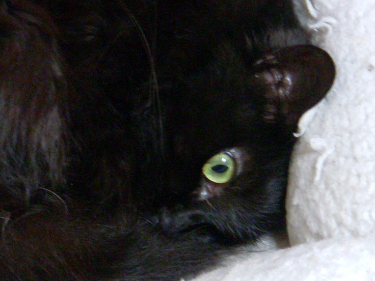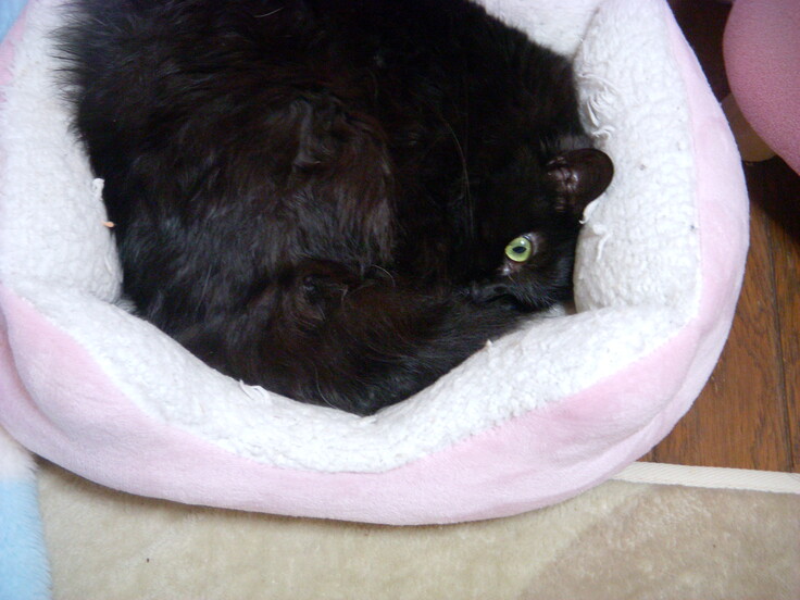 寝てると見せかけ 起きてる クロ(五代目クロ ウチでは初のメスの黒猫)