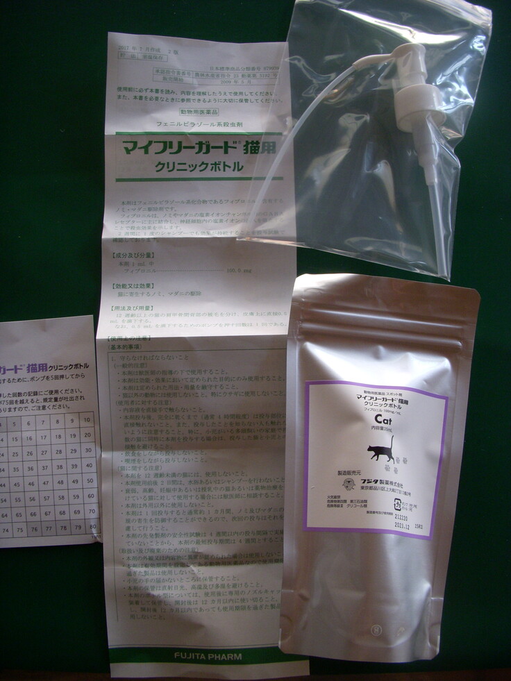 ワンプッシュで0.5ml 出ます ノミ・ダニ駆除の薬です