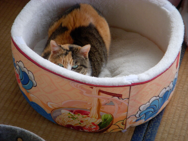 頂戴した猫ベッドで寛ぐ ミケミケどんどん