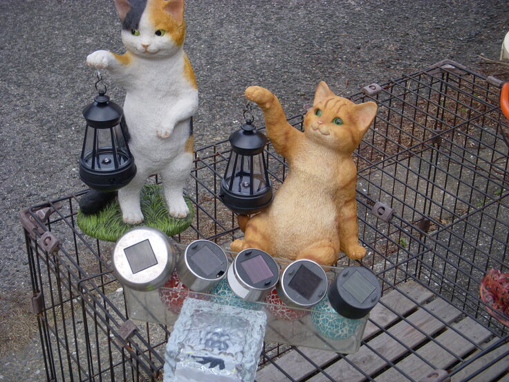 夜間、クリニック入り口を照らす 猫2匹