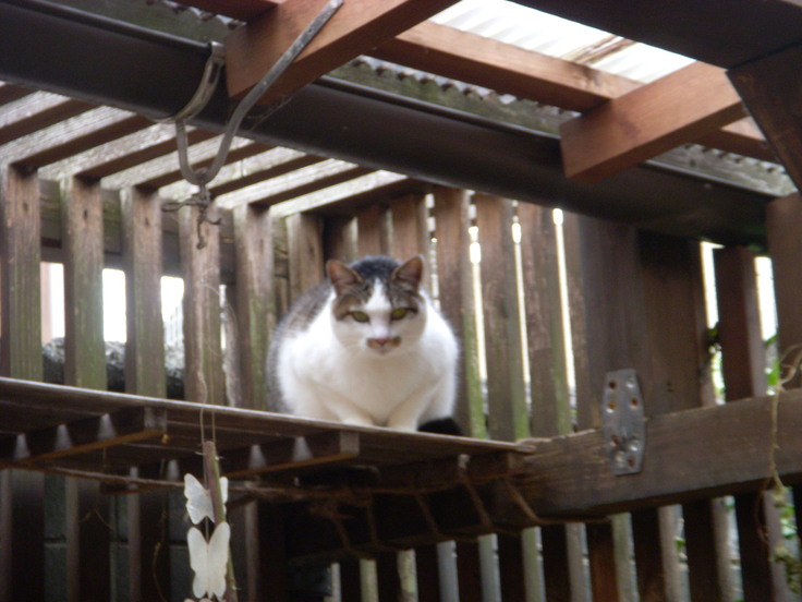 スプレーした後、高い所へ逃げた しぃちゃん