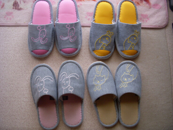 下の色が褪せてるのが開業以来、使ってるスリッパ
