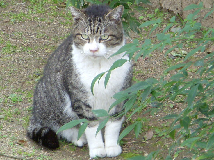 お父さん…と言いたいが どうも おこ の父猫は 別の雄で おこ と同様、白黒のブチで目はエメラルドの色で非常に美しい、尻尾だけ中毛のネコだと思います