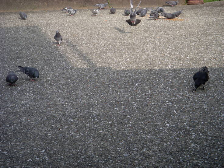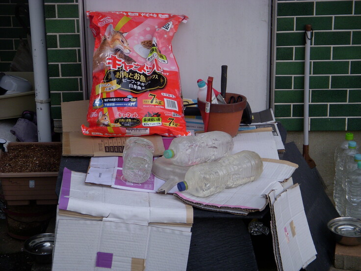 前日のネコ餌の残りと併せて 頂いた鳥エサを撒きます