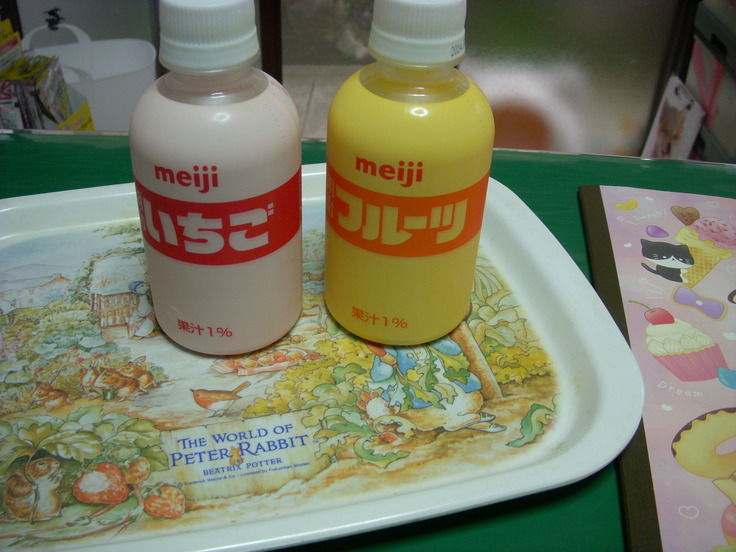 今日、買っておいたフルーツ牛乳を差し入れです