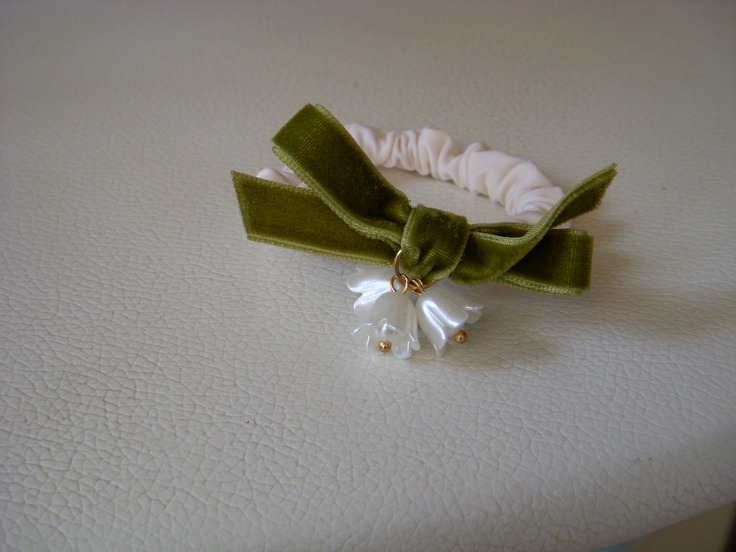 かわいい鈴蘭の飾りの首輪(ヘアゴム)を付けたアルバの写真を撮ろうとしたら
