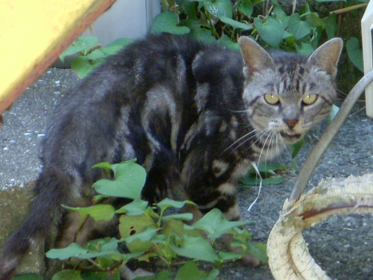 また、昨日、アッサリ、捕まるやろ ( ´ิ(ꈊ) ´ิ) てへぺろお・・と思ってた午前のアメショー柄猫