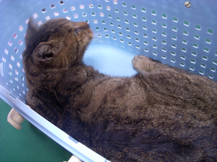 抵抗する素振りだけで 咬まないし、キャリーに入れたらゴロゴロ言ってます