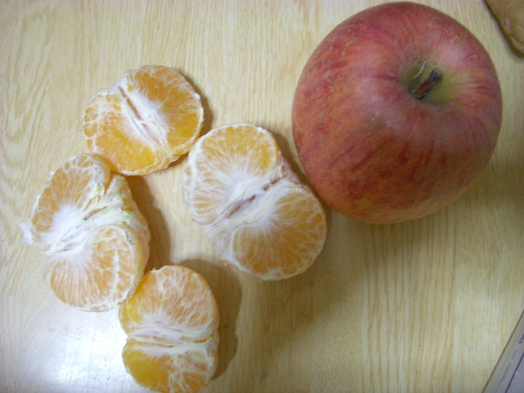 頂いた林檎🍎と往診先の庭からギってきた蜜柑🍊・・・これだとケーキに合わないよね