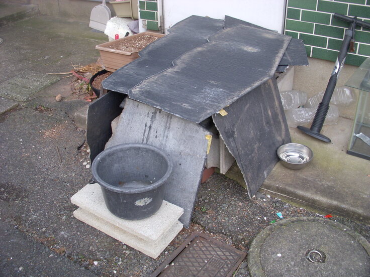 ビニルシートもボロボロになってたし、天井も段ボールだった為、これらは捨てました