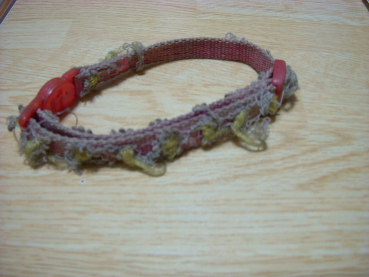 ボロボロの首輪 元はピンクに白い可憐なマーガレットの花がグルリと付いてた愛らしいものでした