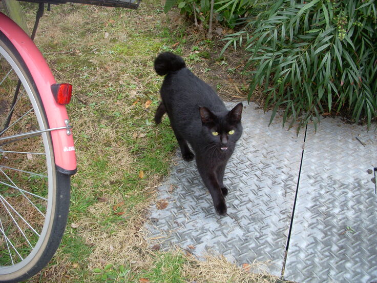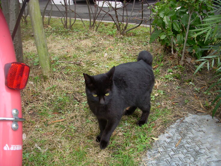 チャリの音を聞きつけ 遠くに居ても 矢のように飛んできます