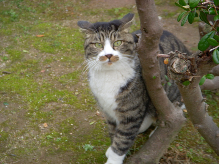 地面に居るのが 右から お姉さん② 6年、捕まらないアメショー柄(未手術)です