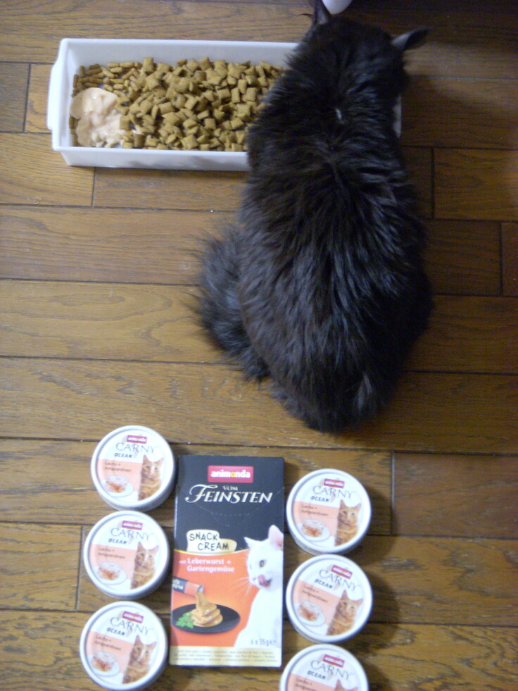 ロイヤルカナン 腎臓サポートセレクションをよけてスマックを食う愛猫クロ