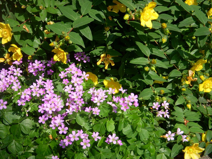 ピンクの花はムラサキカタバミ(紫片喰、紫酢漿)