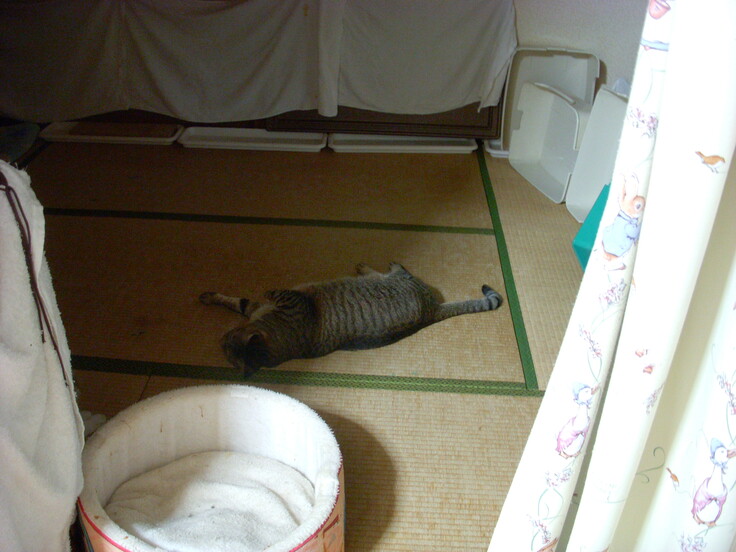 部屋に設置してる猫トイレ(立掛け)やバスタオルは パナウェーブ研究所に憧れての事ではなく、コイツ含めて3頭がスプレーするから (#^ω^)