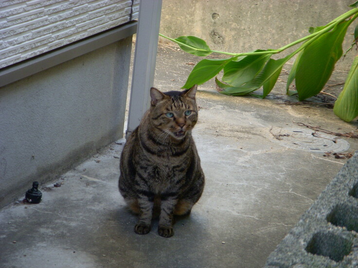 ブロック塀の向こう側の井上食堂2号店に猫が来てるのが分かって 己の存在をアピールしてる顔です