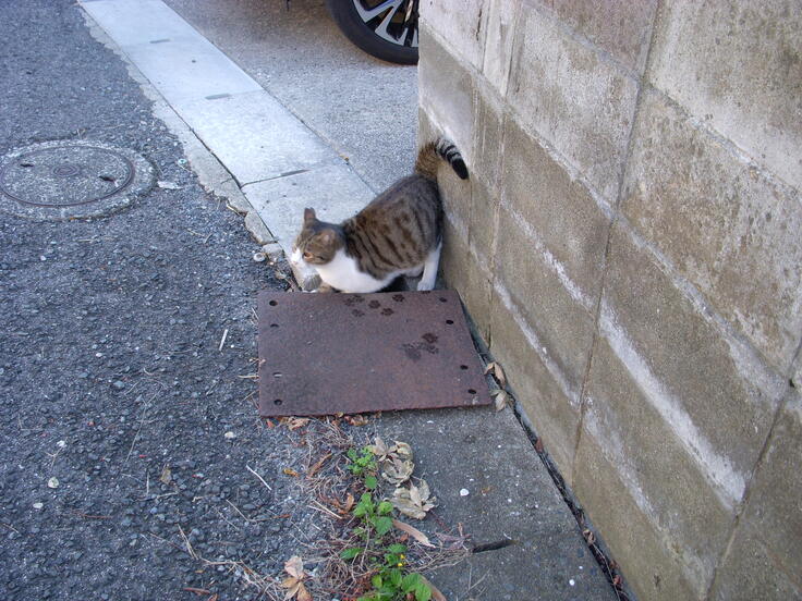 TNRした去勢同士が 近くで威嚇し合うと 即!隠れる小五郎